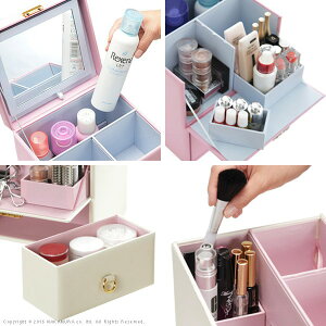 日用品 家具 コスメボックス メイク 収納 メイクボックス バニティケース バニティボックス 化粧品 コンパクト ドレッサー メイクBOX コスメケース 化粧ボックス 化粧入れ 化粧箱 おしゃれ かわいい 鏡付き シェルピンク