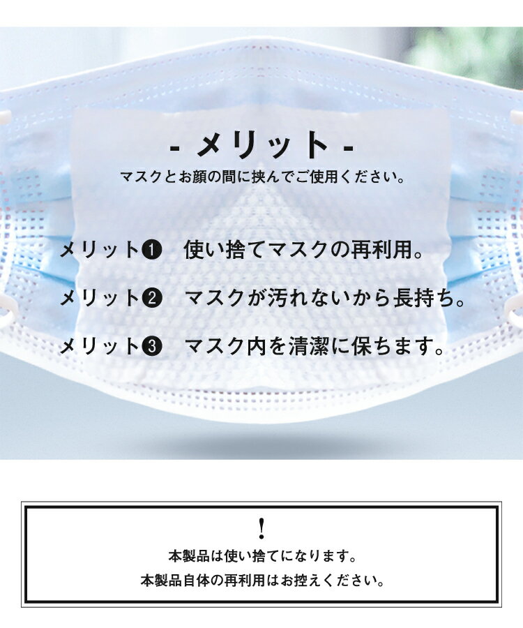 ・ご使用されている使い捨てマスクを捨てないで再度ご使用頂く為の、内側フィルターシートです。